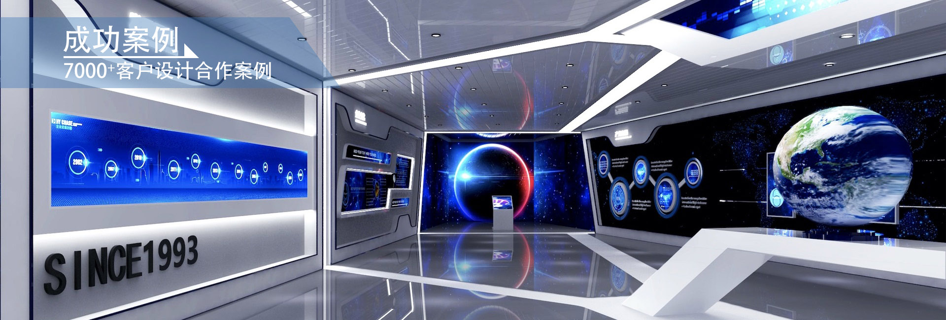 城市:長春,時間:2022年7月-10月。 設(shè)計理念:展廳以科技藍(lán)為主色,藍(lán)、白、灰為基調(diào),整體簡約、大氣,展現(xiàn)企業(yè)不凡魅力。 -
