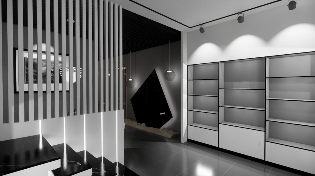 設(shè)計(jì)思路:采用開放式的空間布局,通過合理的空間劃分和流線設(shè)計(jì),營造通透、寬敞的展示環(huán)境。金屬線條引導(dǎo):利用金屬線條或框架,在空間中進(jìn)行巧妙的引導(dǎo)和劃分,形成有序且富有動感的展示區(qū)域。