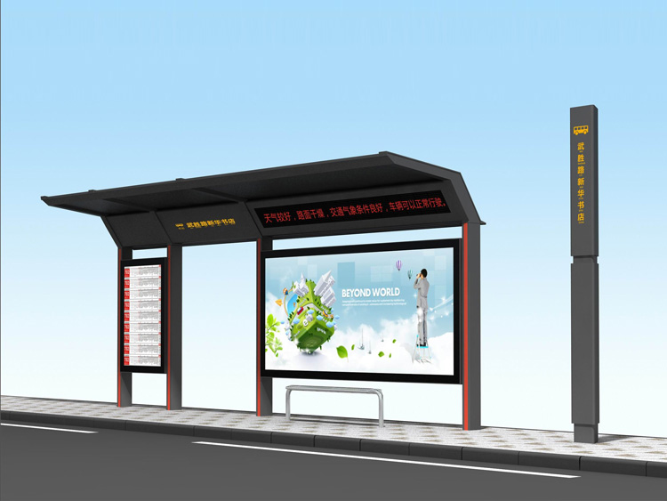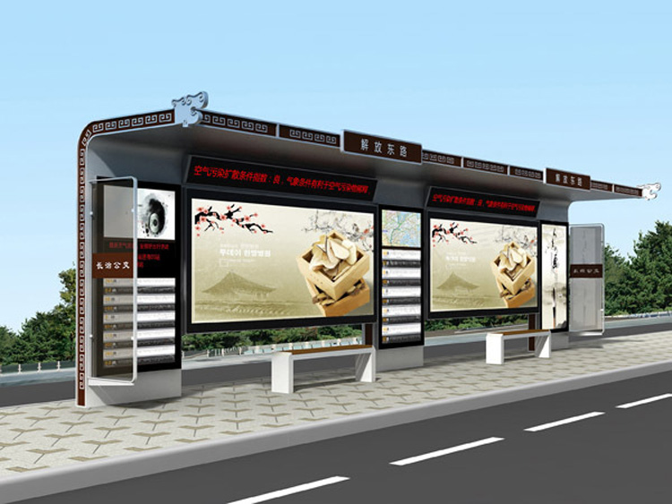 公交候車亭,一般是與公交站牌相配套的,為方便公交乘客候車時遮陽、防雨等,在車站、道路兩旁或綠化帶的港灣式公交停靠站上建設的交通設施。由于城市公交的日益發達,公交候車亭已發展成為城市一個不可或缺的重要組成部分,設計精美的公交候車亭也成為了城市一道美麗的風景。 一般公交候車亭主要由支柱、頂棚和隔板組成,也有用廣告燈箱更換隔板的