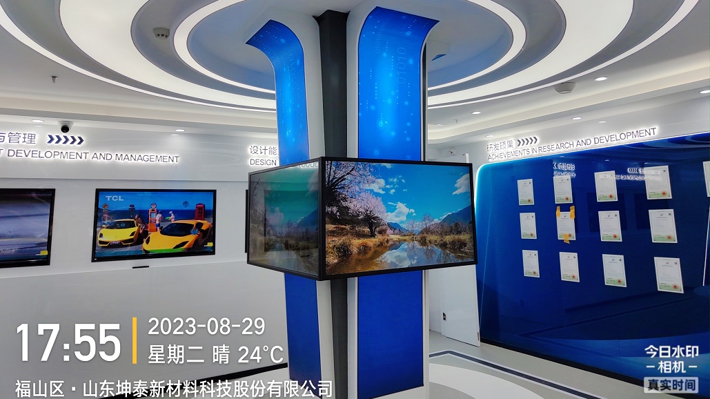 設(shè)計(jì)思路:整個(gè)展廳的空間第一視覺采用明亮的白色作為空間主色調(diào),點(diǎn)綴企業(yè)文化藍(lán)及LOGO藍(lán)作為主題色為主。以動(dòng)感的線條,柔軟輕薄的造型,彰顯該企業(yè)作為汽車零部件新材料企業(yè)的銳意創(chuàng)新,裝飾造型的成型一體化及玻璃的使用,創(chuàng)造一種高光精致及滲透力的展示空間。