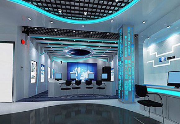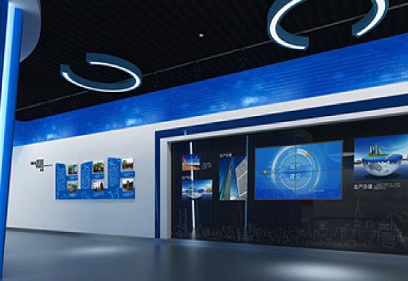 城市:山東青島,時間:2015年7月-9月。設計理念:電力科技公司展廳以黑色為底,藍色凸顯科技力量,布局合理,聲光電結合,展現(xiàn)企業(yè)風采 -