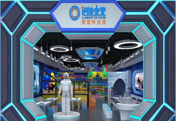 城市:山東濟寧,時間:2020年8月-10月.設計理念:科技展廳布局現(xiàn)代,黑色深邃,藍色科技,聲光電互動,打造科技盛宴 -