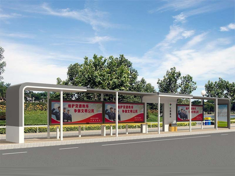 公交車候車亭一般是與公交站牌相配套的,為方便公交乘客候車時遮陽、防雨等,在車站、道路兩旁或綠化帶的港灣式公交?空旧辖ㄔO的交通設施。由于城市公交的日益發達,候車亭已發展成為城市一個不可或缺的重要組成部分,設計精美的候車亭也成為了城市一道美麗的風景。 一般候車亭棚體主要頂棚、立柱、頂弓、廣告燈箱和坐凳組成,也有用隔板來代替廣告燈箱的。