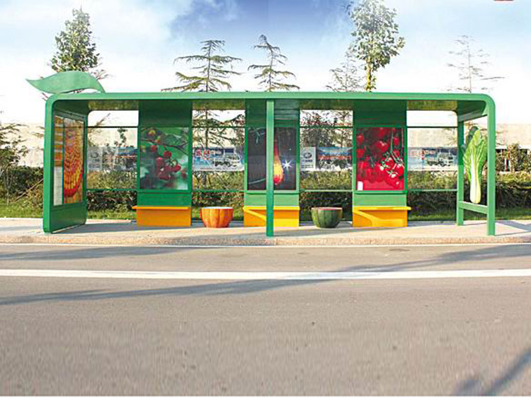 公交車候車亭一般是與公交站牌相配套的,為方便公交乘客候車時遮陽、防雨等,在車站、道路兩旁或綠化帶的港灣式公交停靠站上建設(shè)的交通設(shè)施。由于城市公交的日益發(fā)達,候車亭已發(fā)展成為城市一個不可或缺的重要組成部分,設(shè)計精美的候車亭也成為了城市一道美麗的風景。 一般候車亭棚體主要頂棚、立柱、頂弓、廣告燈箱和坐凳組成,也有用隔板來代替廣告燈箱的。