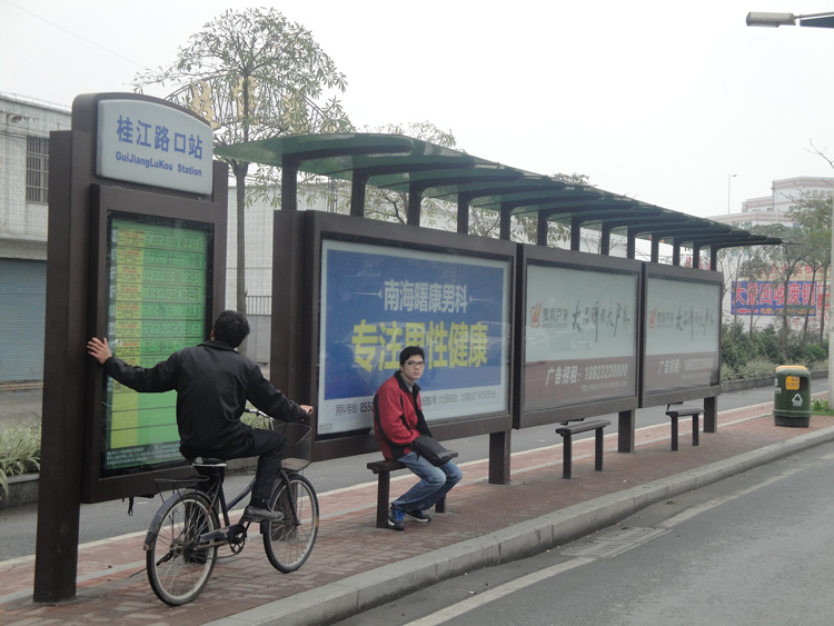 我公司專業生產公交站臺、候車亭、不銹鋼公交候車亭、鋁合金公交候車亭、仿古候車亭、公共自行車棚、公共自行車亭、自行車服務亭、出租車的士亭、公交電子站牌、宣傳欄燈箱、閱報欄燈箱、崗亭、指路牌、路名牌燈箱、LED滾動燈箱、廣告垃圾箱、戶外大型廣告燈箱等幾十種廣告設備。