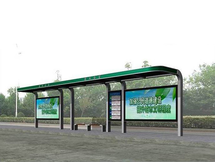 公交車候車亭一般是與公交站牌相配套的,為方便公交乘客候車時遮陽、防雨等,在車站、道路兩旁或綠化帶的港灣式公交停靠站上建設的交通設施。由于城市公交的日益發達,候車亭已發展成為城市一個不可或缺的重要組成部分,設計精美的候車亭也成為了城市一道美麗的風景。 一般候車亭棚體主要頂棚、立柱、頂弓、廣告燈箱和坐凳組成,也有用隔板來代替廣告燈箱的。