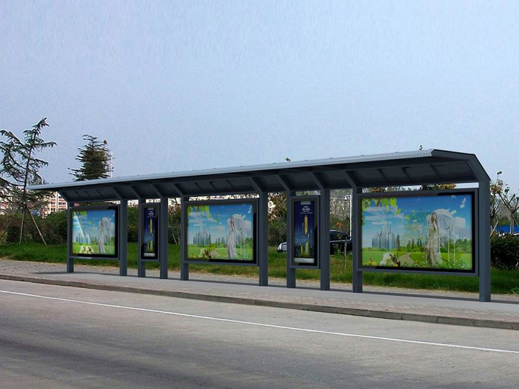 公交車候車亭一般是與公交站牌相配套的,為方便公交乘客候車時遮陽、防雨等,在車站、道路兩旁或綠化帶的港灣式公交停靠站上建設的交通設施。由于城市公交的日益發達,候車亭已發展成為城市一個不可或缺的重要組成部分,設計精美的候車亭也成為了城市一道美麗的風景。 一般候車亭棚體主要頂棚、立柱、頂弓、廣告燈箱和坐凳組成,也有用隔板來代替廣告燈箱的。