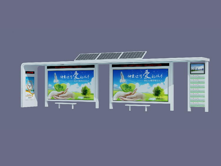 公交車候車亭一般是與公交站牌相配套的,為方便公交乘客候車時遮陽、防雨等,在車站、道路兩旁或綠化帶的港灣式公交停靠站上建設的交通設施。由于城市公交的日益發達,候車亭已發展成為城市一個不可或缺的重要組成部分,設計精美的候車亭也成為了城市一道美麗的風景。 一般候車亭棚體主要頂棚、立柱、頂弓、廣告燈箱和坐凳組成,也有用隔板來代替廣告燈箱的。