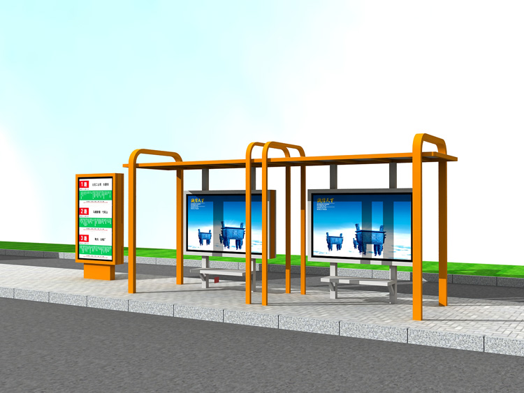 公交車(chē)候車(chē)亭一般是與公交站牌相配套的,為方便公交乘客候車(chē)時(shí)遮陽(yáng)、防雨等,在車(chē)站、道路兩旁或綠化帶的港灣式公交停靠站上建設(shè)的交通設(shè)施。由于城市公交的日益發(fā)達(dá),候車(chē)亭已發(fā)展成為城市一個(gè)不可或缺的重要組成部分,設(shè)計(jì)精美的候車(chē)亭也成為了城市一道美麗的風(fēng)景。 一般候車(chē)亭棚體主要頂棚、立柱、頂弓、廣告燈箱和坐凳組成,也有用隔板來(lái)代替廣告燈箱的。
