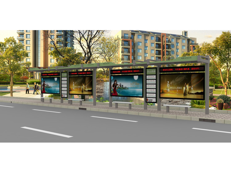 公交車候車亭一般是與公交站牌相配套的,為方便公交乘客候車時遮陽、防雨等,在車站、道路兩旁或綠化帶的港灣式公交停靠站上建設的交通設施。由于城市公交的日益發達,候車亭已發展成為城市一個不可或缺的重要組成部分,設計精美的候車亭也成為了城市一道美麗的風景。 一般候車亭棚體主要頂棚、立柱、頂弓、廣告燈箱和坐凳組成,也有用隔板來代替廣告燈箱的。
