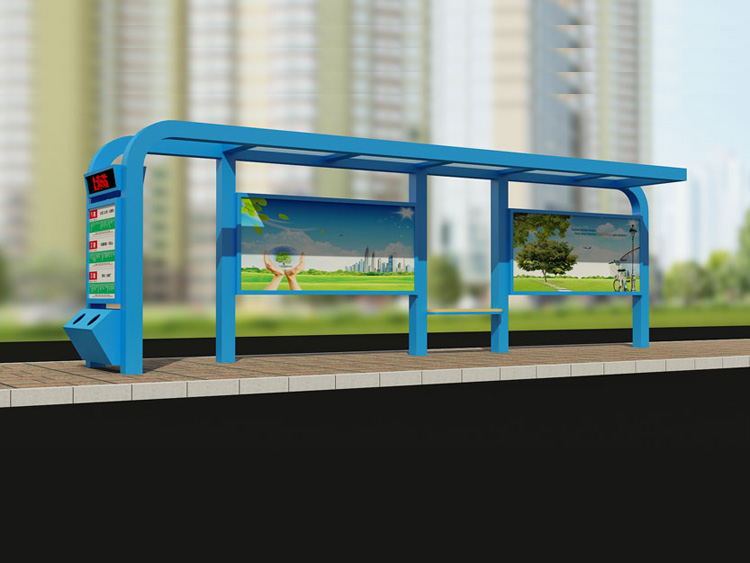 公交車候車亭一般是與公交站牌相配套的,為方便公交乘客候車時遮陽、防雨等,在車站、道路兩旁或綠化帶的港灣式公交停靠站上建設的交通設施。由于城市公交的日益發達,候車亭已發展成為城市一個不可或缺的重要組成部分,設計精美的候車亭也成為了城市一道美麗的風景。 一般候車亭棚體主要頂棚、立柱、頂弓、廣告燈箱和坐凳組成,也有用隔板來代替廣告燈箱的。