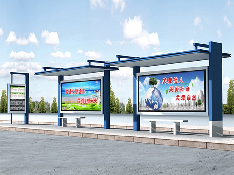 公交車候車亭一般是與公交站牌相配套的,為方便公交乘客候車時(shí)遮陽、防雨等,在車站、道路兩旁或綠化帶的港灣式公交停靠站上建設(shè)的交通設(shè)施。由于城市公交的日益發(fā)達(dá),候車亭已發(fā)展成為城市一個(gè)不可或缺的重要組成部分,設(shè)計(jì)精美的候車亭也成為了城市一道美麗的風(fēng)景。 一般候車亭棚體主要頂棚、立柱、頂弓、廣告燈箱和坐凳組成,也有用隔板來代替廣告燈箱的。