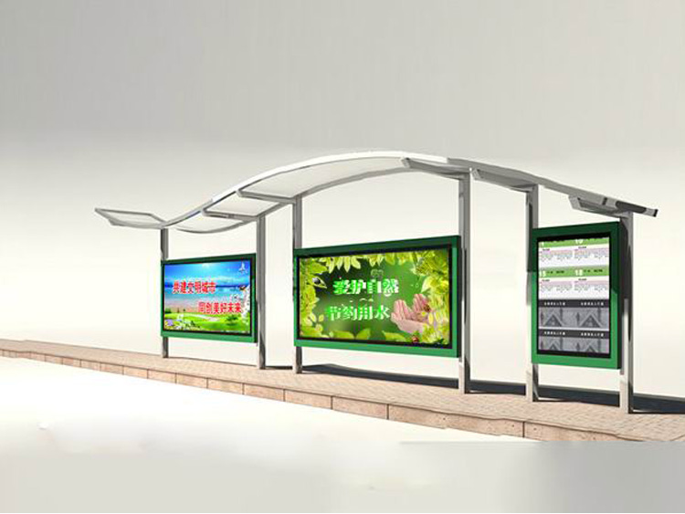 公交車候車亭一般是與公交站牌相配套的,為方便公交乘客候車時(shí)遮陽(yáng)、防雨等,在車站、道路兩旁或綠化帶的港灣式公交停靠站上建設(shè)的交通設(shè)施。由于城市公交的日益發(fā)達(dá),候車亭已發(fā)展成為城市一個(gè)不可或缺的重要組成部分,設(shè)計(jì)精美的候車亭也成為了城市一道美麗的風(fēng)景。 一般候車亭棚體主要頂棚、立柱、頂弓、廣告燈箱和坐凳組成,也有用隔板來(lái)代替廣告燈箱的。