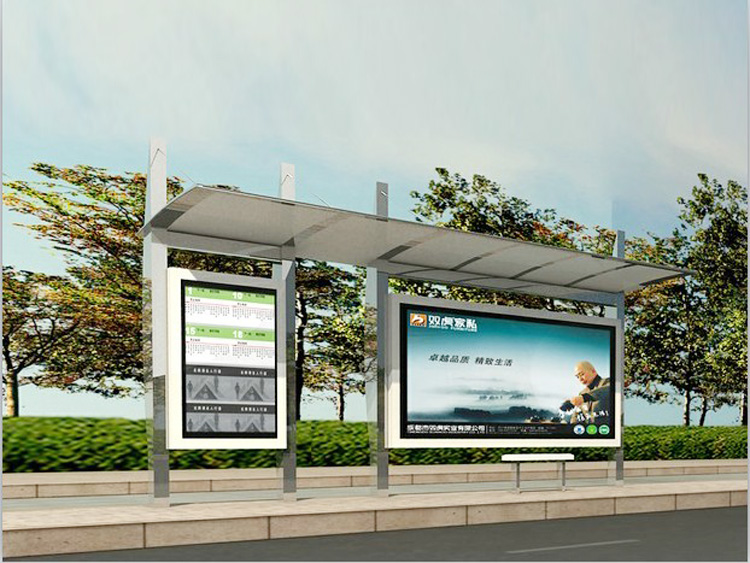 公交車候車亭一般是與公交站牌相配套的,為方便公交乘客候車時遮陽、防雨等,在車站、道路兩旁或綠化帶的港灣式公交停靠站上建設的交通設施。由于城市公交的日益發(fā)達,候車亭已發(fā)展成為城市一個不可或缺的重要組成部分,設計精美的候車亭也成為了城市一道美麗的風景。 一般候車亭棚體主要頂棚、立柱、頂弓、廣告燈箱和坐凳組成,也有用隔板來代替廣告燈箱的。