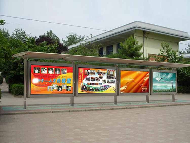 公交車候車亭一般是與公交站牌相配套的,為方便公交乘客候車時遮陽、防雨等,在車站、道路兩旁或綠化帶的港灣式公交停靠站上建設(shè)的交通設(shè)施。由于城市公交的日益發(fā)達,候車亭已發(fā)展成為城市一個不可或缺的重要組成部分,設(shè)計精美的候車亭也成為了城市一道美麗的風景。 一般候車亭棚體主要頂棚、立柱、頂弓、廣告燈箱和坐凳組成,也有用隔板來代替廣告燈箱的。