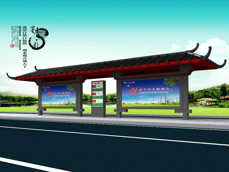 公交車候車亭一般是與公交站牌相配套的,為方便公交乘客候車時遮陽、防雨等,在車站、道路兩旁或綠化帶的港灣式公交停靠站上建設(shè)的交通設(shè)施。由于城市公交的日益發(fā)達,候車亭已發(fā)展成為城市一個不可或缺的重要組成部分,設(shè)計精美的候車亭也成為了城市一道美麗的風(fēng)景。 一般候車亭棚體主要頂棚、立柱、頂弓、廣告燈箱和坐凳組成,也有用隔板來代替廣告燈箱的。