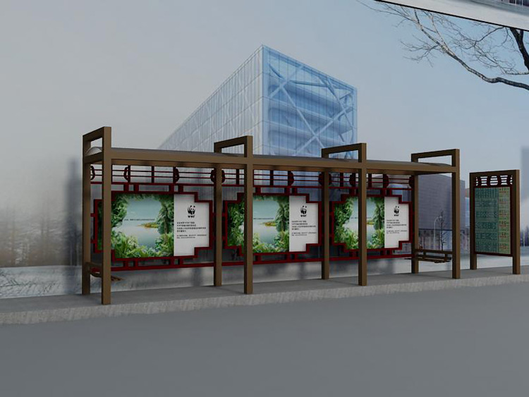 公交車候車亭一般是與公交站牌相配套的,為方便公交乘客候車時(shí)遮陽(yáng)、防雨等,在車站、道路兩旁或綠化帶的港灣式公交停靠站上建設(shè)的交通設(shè)施。由于城市公交的日益發(fā)達(dá),候車亭已發(fā)展成為城市一個(gè)不可或缺的重要組成部分,設(shè)計(jì)精美的候車亭也成為了城市一道美麗的風(fēng)景。 一般候車亭棚體主要頂棚、立柱、頂弓、廣告燈箱和坐凳組成,也有用隔板來(lái)代替廣告燈箱的。