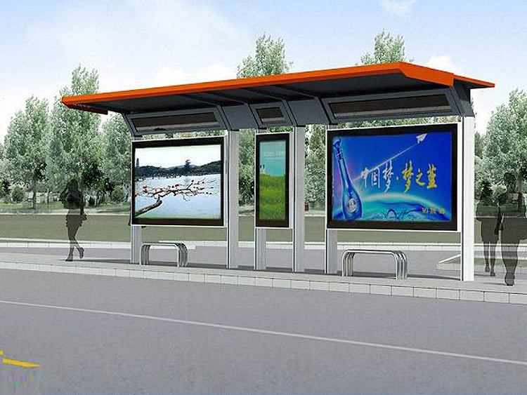 公交車候車亭一般是與公交站牌相配套的,為方便公交乘客候車時遮陽、防雨等,在車站、道路兩旁或綠化帶的港灣式公交停靠站上建設的交通設施。由于城市公交的日益發達,候車亭已發展成為城市一個不可或缺的重要組成部分,設計精美的候車亭也成為了城市一道美麗的風景。 一般候車亭棚體主要頂棚、立柱、頂弓、廣告燈箱和坐凳組成,也有用隔板來代替廣告燈箱的。