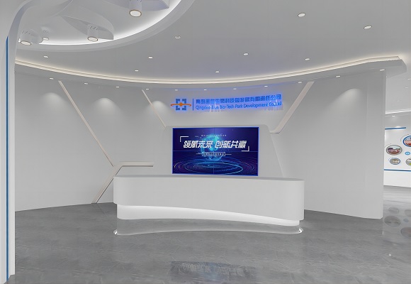 城市:山東泰安,時間:2022年6月-9月。 設計理念:科技公司展廳以白色為底,藍綠凸顯環(huán)保理念,布局合理,聲光電結合,傳遞企業(yè)文化 -