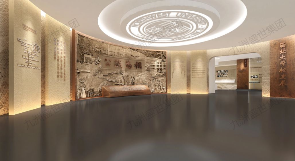 設計思路:以卡其色為主色調(diào),營造沉穩(wěn)而莊重的氛圍,彰顯西北大學悠久的歷史與深厚的文化底蘊。通過圖文、實物等展示形式,講述學校的發(fā)展歷程與輝煌成就。同時,融入傳統(tǒng)元素,打造具有西北特色的展示空間,讓參觀者感受學校的獨特魅力。