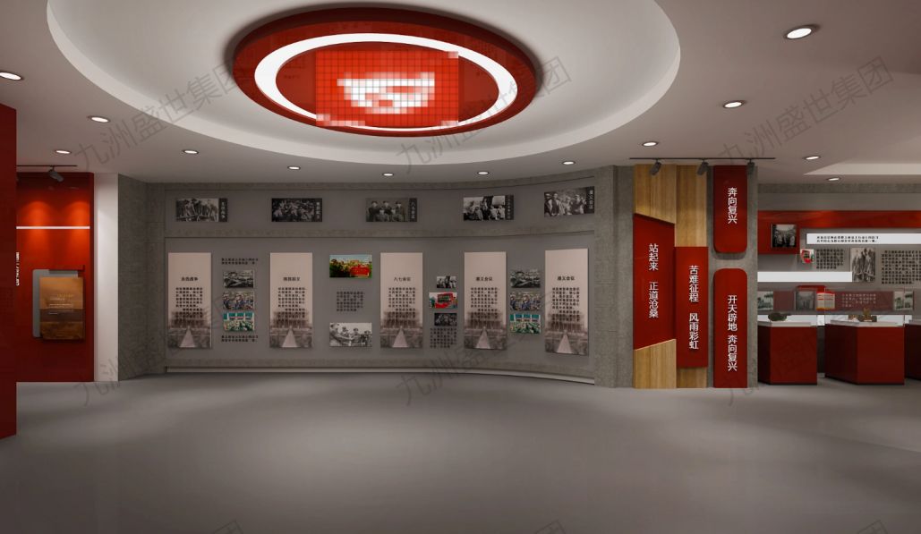 設(shè)計(jì)思路:展廳應(yīng)以清晰的時(shí)間線展示黨的歷史發(fā)展脈絡(luò),包括黨的成立、發(fā)展壯大、各個(gè)歷史時(shí)期的重大事件和決策等。通過(guò)圖文、影像資料,讓參觀者了解黨的光輝歷程和豐功偉績(jī)。