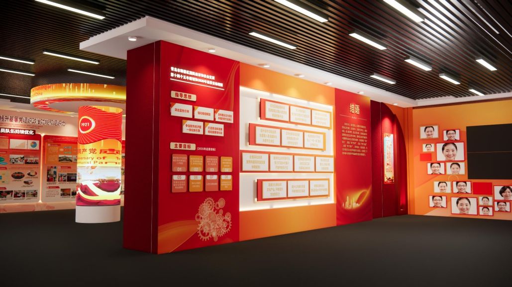設(shè)計(jì)思路:在展館設(shè)計(jì)中,應(yīng)突出非凡新時(shí)代的時(shí)代特色,運(yùn)用現(xiàn)代設(shè)計(jì)理念和技術(shù)手段,展現(xiàn)黨建工作的新風(fēng)貌和新成就,注重將歷史與現(xiàn)代相結(jié)合,通過(guò)對(duì)比展示新時(shí)代黨建工作的創(chuàng)新成果,凸顯黨建工作的時(shí)代價(jià)值。
